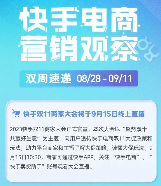 媒體報(bào)道快手雙11商家大會將于9月15日啟動線上直播