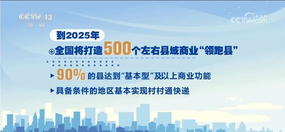 按照規(guī)劃,到2025年,全國將打造500個左右縣域商業(yè)“領(lǐng)跑縣”,90%的縣達(dá)到“基本型”及以上商業(yè)功能,具備條件的地區(qū)基本實現(xiàn)村村通快遞。