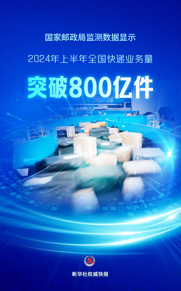 國(guó)家郵政局監(jiān)測(cè)數(shù)據(jù)顯示,截至6月30日,今年上半年我國(guó)快遞業(yè)務(wù)量突破800億件,比2023年提前59天。
