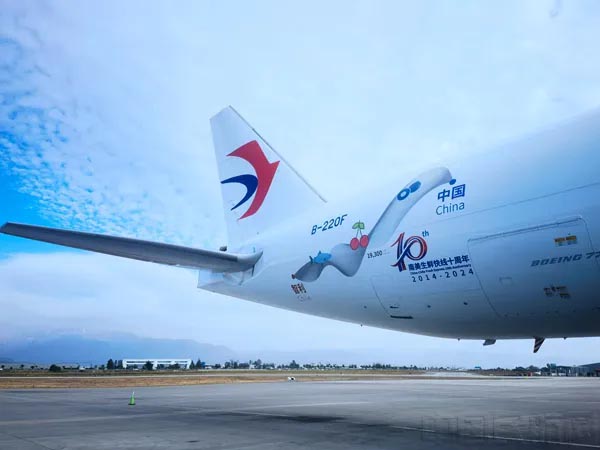 11月20日,東航物流B777F貨機裝載76噸智利新鮮車?yán)遄?,從智利首都圣地亞哥?jīng)停洛杉磯飛抵上海浦東機場,全程1.93萬公里,用時約25小時。