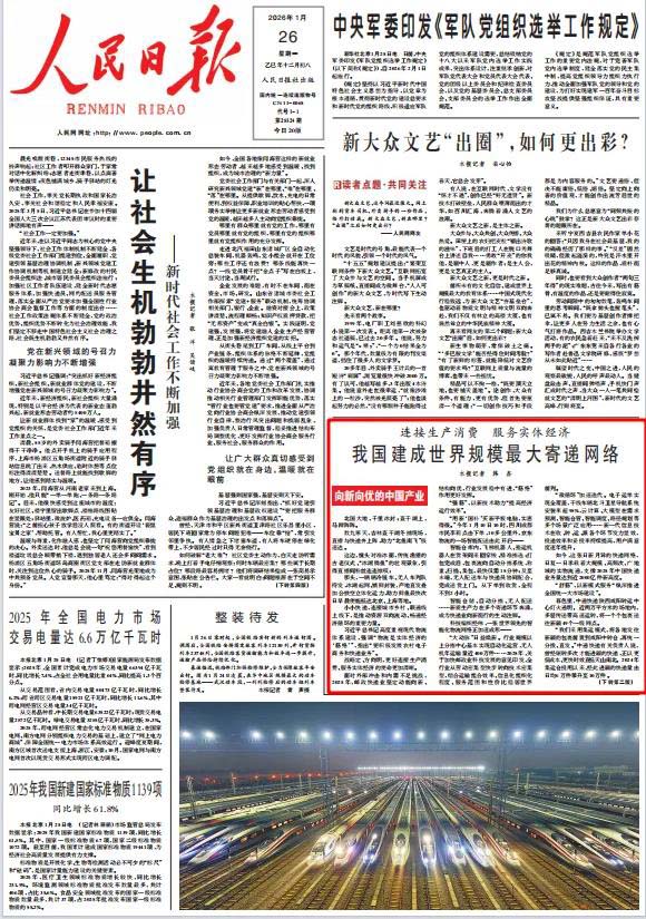 人民日報:我國建成世界規(guī)模最大寄遞網絡(向新向優(yōu)的中國產業(yè))
