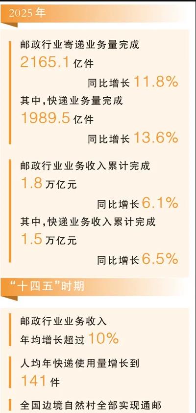 這只是中國物流新速度的一個切面。新速度背后是一張世界上規(guī)模最大、受益人數(shù)最多的寄遞網(wǎng)絡:2025年,中國快遞業(yè)務量近2000億件,同比增長13.6%,連續(xù)12年位居世界第一?!笆奈濉睍r期,農(nóng)村和邊境地區(qū)郵政通達廣度深度明顯提升,營業(yè)網(wǎng)點數(shù)量較5年前增長近1.5倍,全國邊境自然村全部實現(xiàn)通郵。
