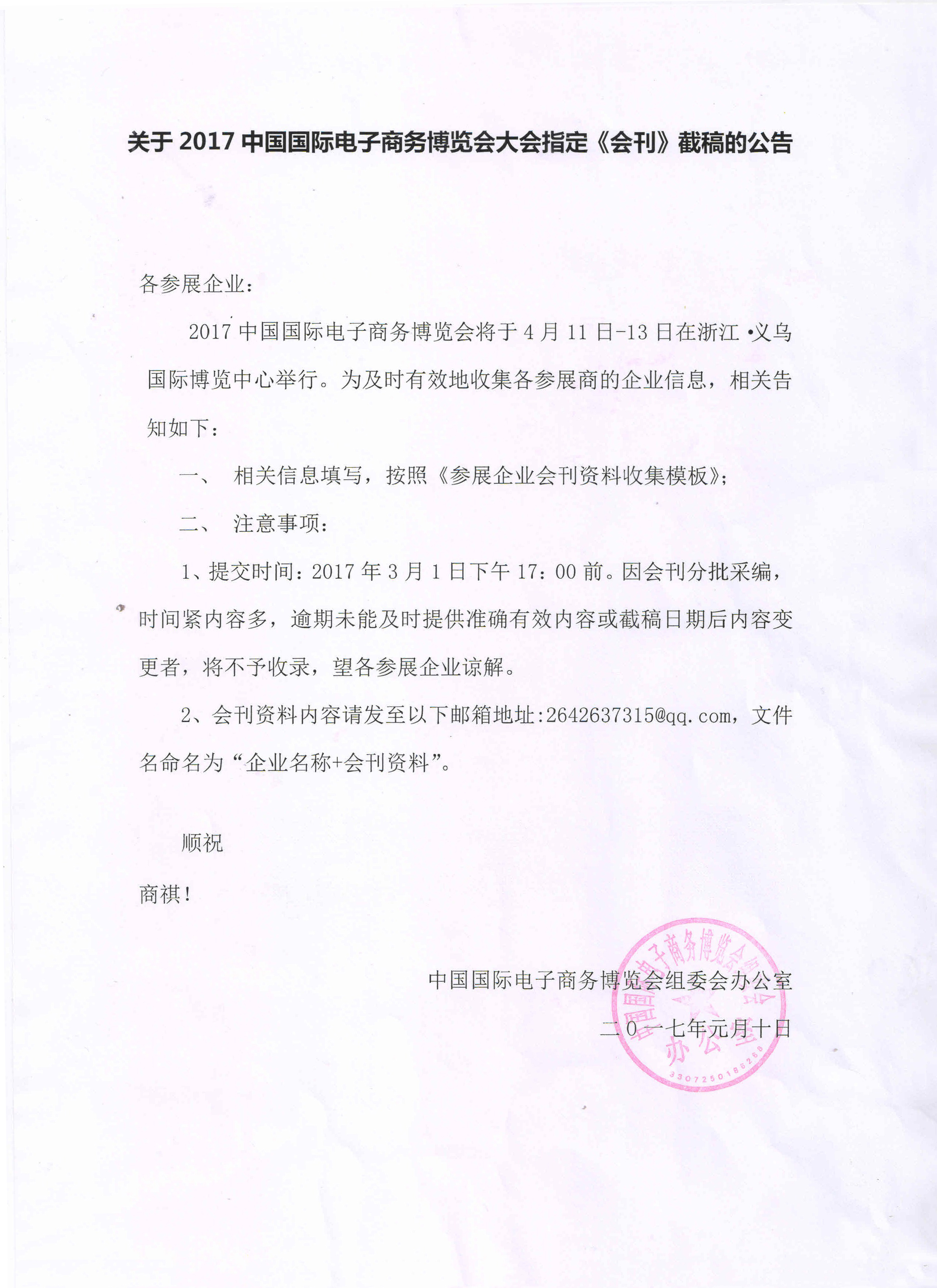 關于2017中國國際電子商務博覽會大會指定《會刊》截稿公告